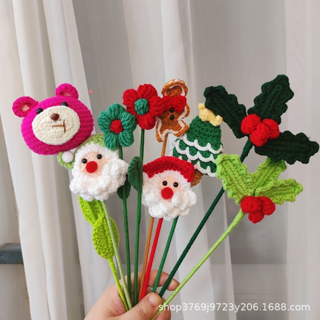クリスマスクリエイティブウール手編みフラワーブーケ完成品お祝いギフト学校装飾