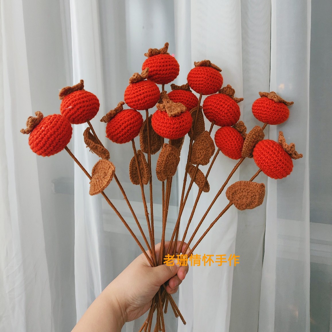 お正月プレゼント柿柿如意ピュアハンド毛糸編み花柿一本花束クリエイティブギフト完成品