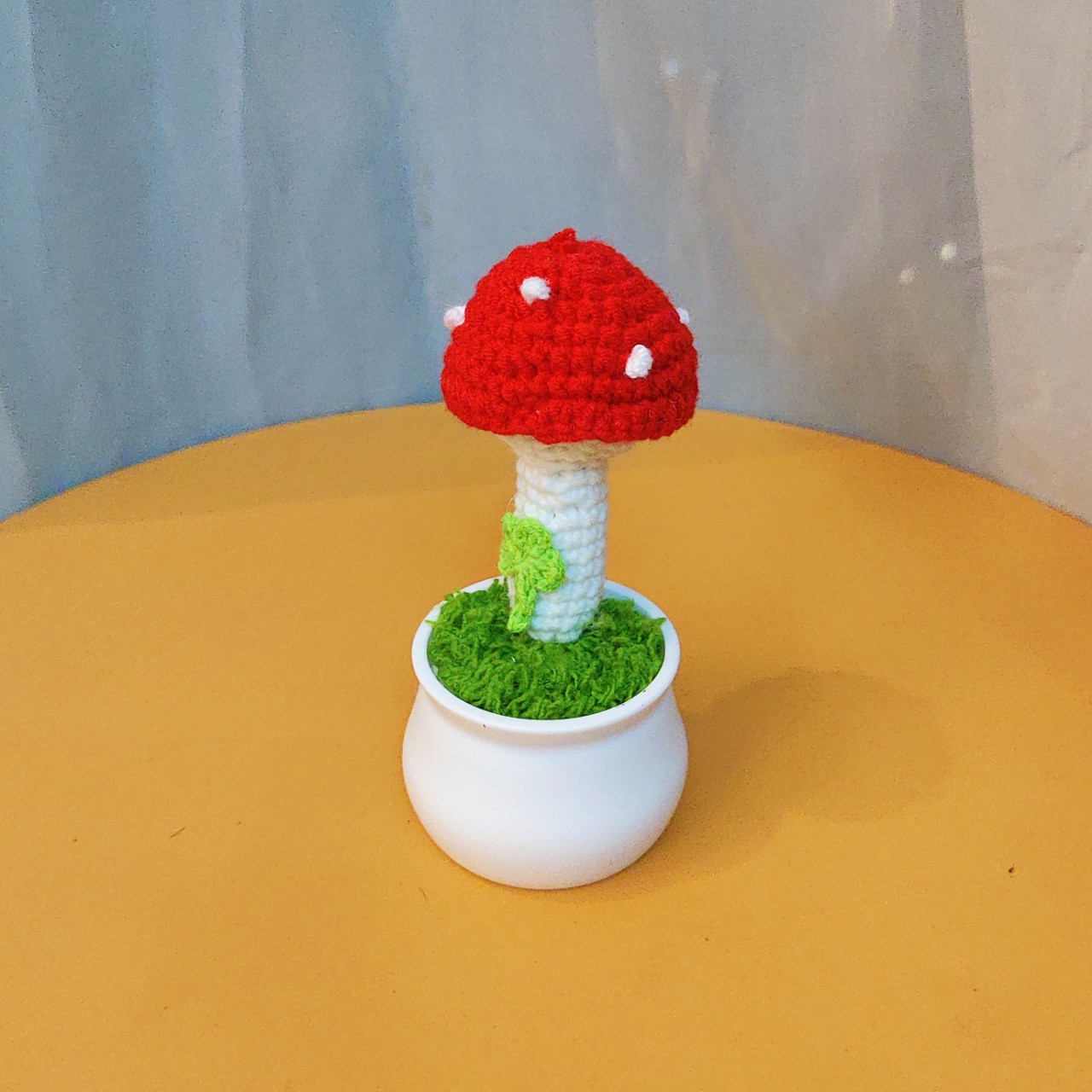 手作りの毛糸編みのキノコの白い鉢植えの完成品の車載オフィスの家庭の置物の永遠の花