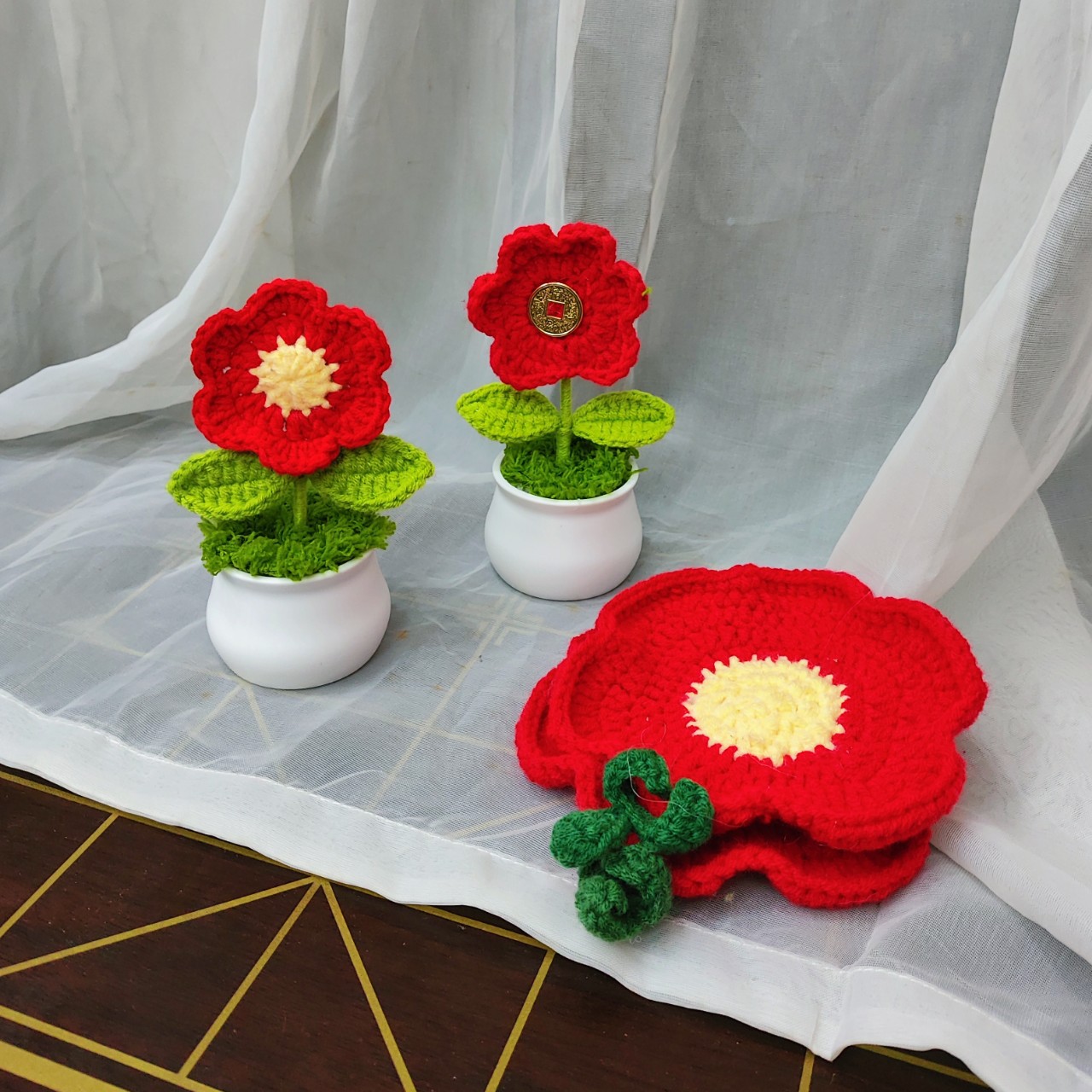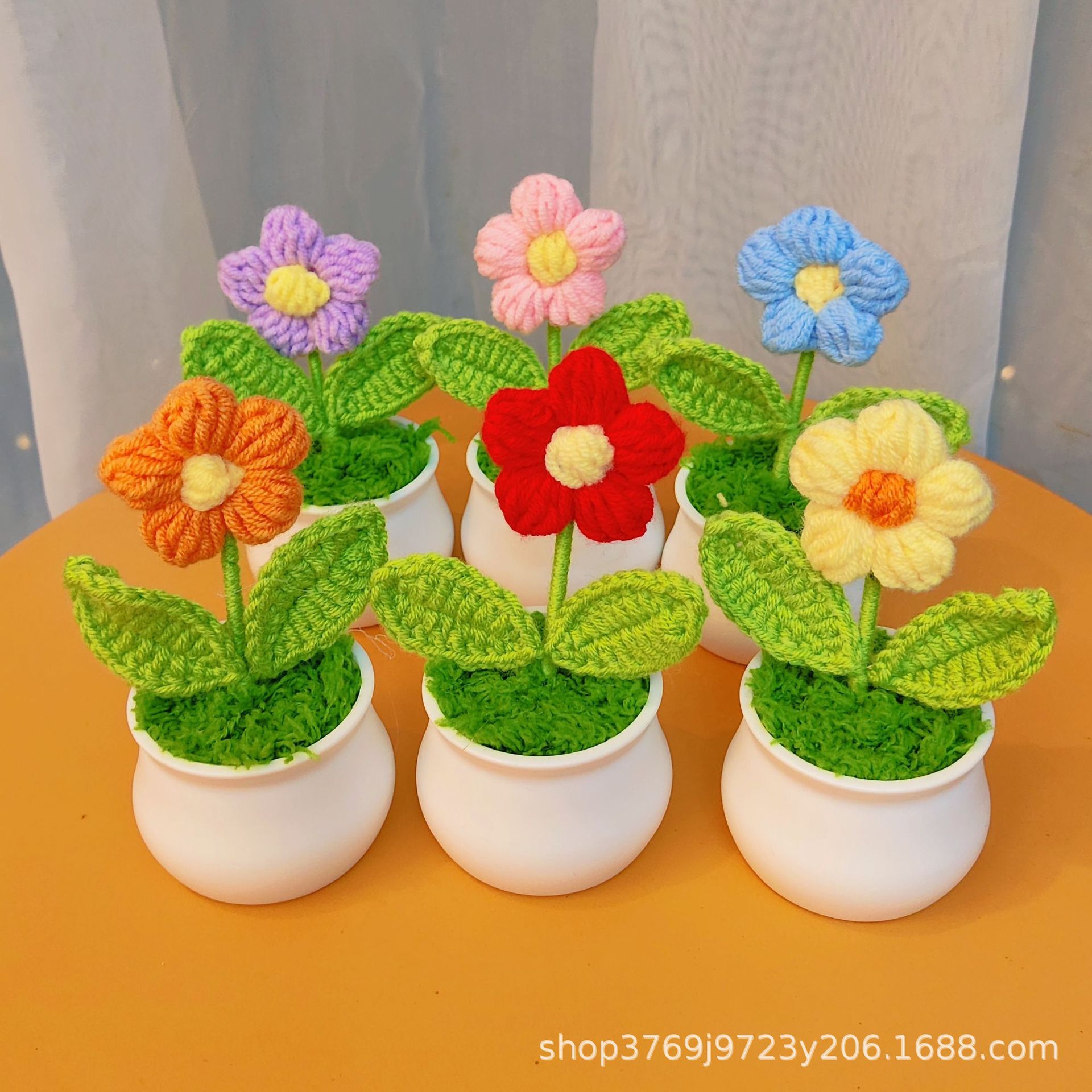 完成品クロスボーダー小紅花手作り毛糸編み小盆栽オフィス置物車内アクセサリー教師の日プレゼント