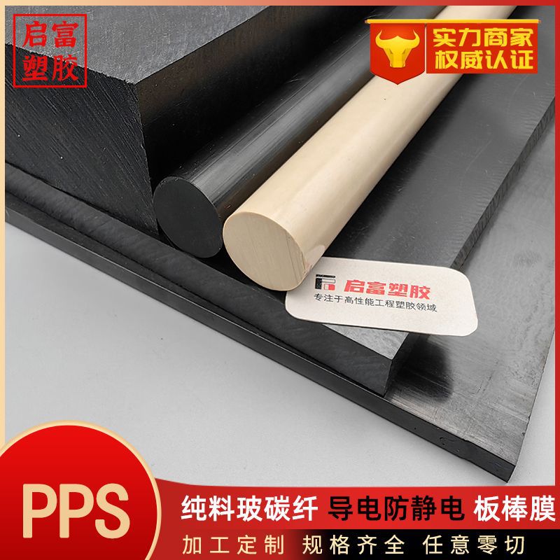 工場直送の繊維強化ppsボード、耐摩耗性および耐高温性のppsポリフェニルスルフェンボード、帯電防止黒色ppsロッド