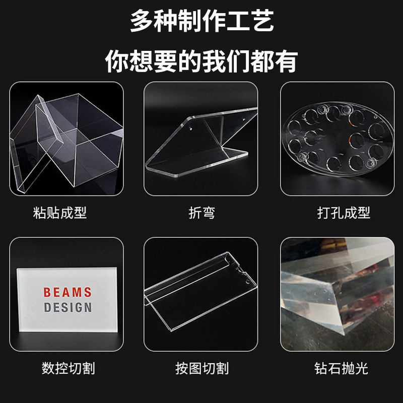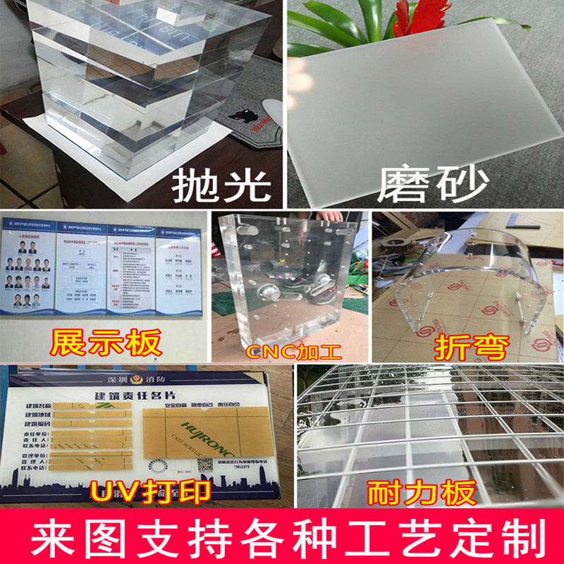 透明アクリル板、プラスチック板、シルクスクリーン彫刻、研磨、曲げ耐久板、特殊形状レーザー切断加工