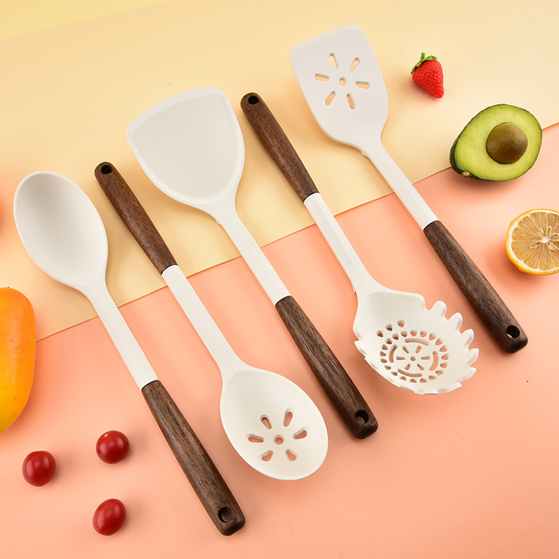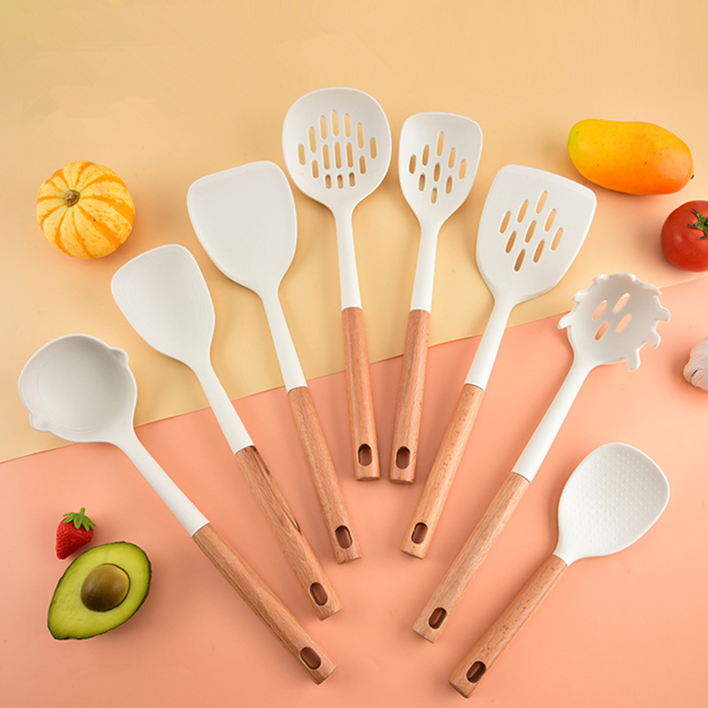 クロスボーダー新しいシリコーン木製ハンドルスパチュラスープスプーンノンスティックキッチンツール高温耐性調理スパチュラキッチン用品セット