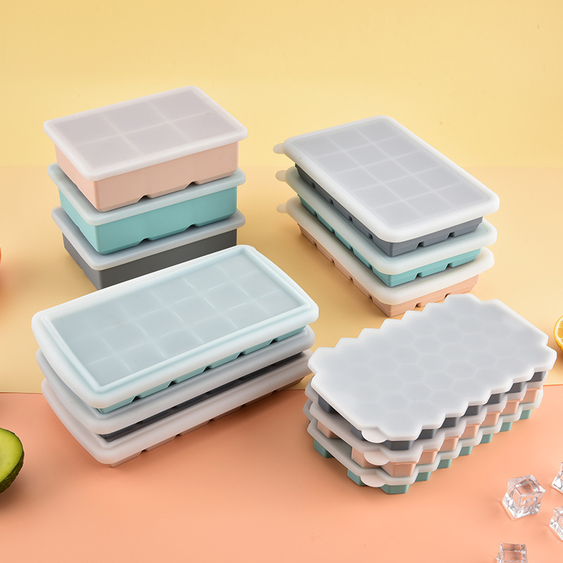 24 グリッド家庭用シリコーン製氷皿型 15 グリッド正方形アイスキューブ型簡単に取り外し可能な蓋付きアイスボックス製氷アーティファクト