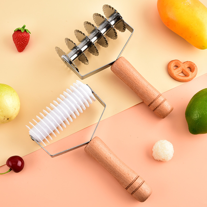 六輪ステンレスピザローラーナイフ木柄パンプルメッシュナイフ麺カッターカッターレースパンケーキ