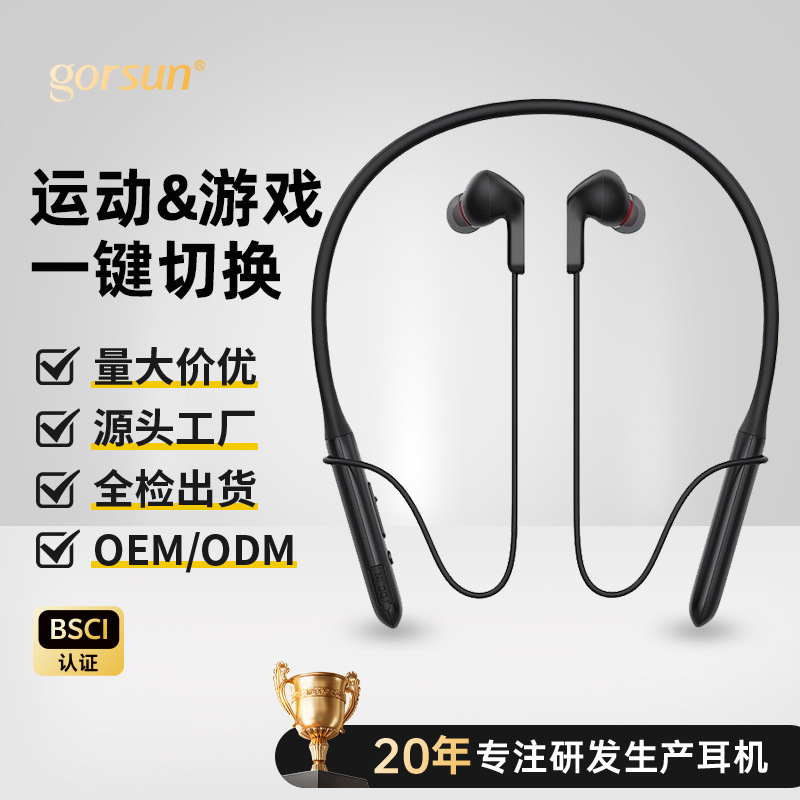 Bluetooth ネックバンド型有線マイク付きゲーミングイヤホン、両耳インイヤー型、Geshang E19 防水スポーツeスポーツ用ヘッドセット