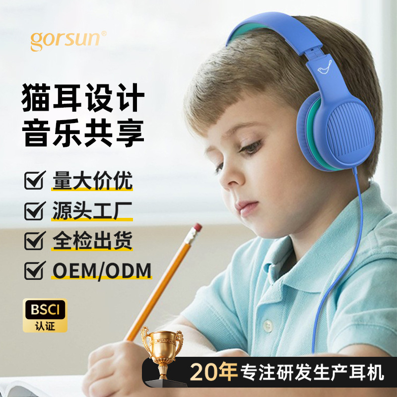 子供用ヘッドマウント有線ヘッドフォンかわいい猫耳折りたたみカラーオンラインクラス学習共有3.5ダイレクトプラグヘッドフォン