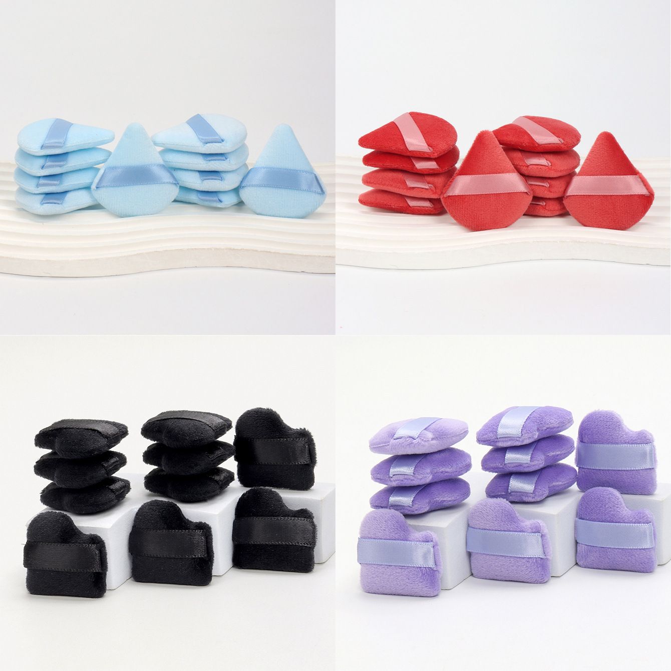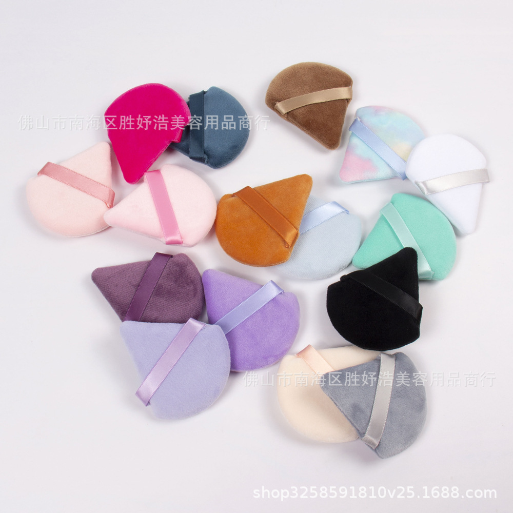斜口方ミニ散粉パフ、クリスタルベルベット散粉パフ多色三角形散粉乾燥粉綿パフ