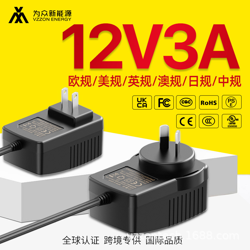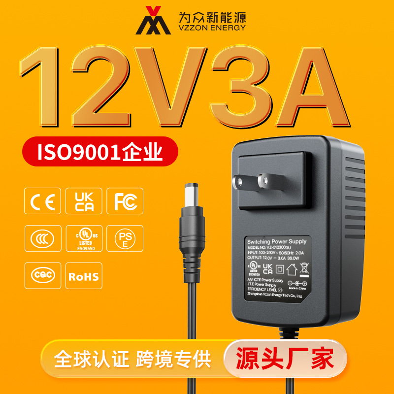 12v3a電源アダプタ美規認証ledランプルータセットトップボックス付きセキュリティ監視電源充電器