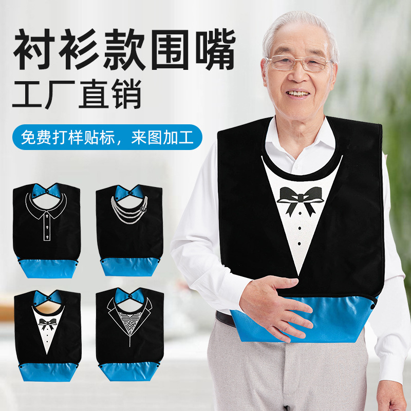 国境を越えた現物の成人のポケット防水汚れ防止黒色プリントの口を囲む高齢者の食事用唾液タオルのカスタマイズ