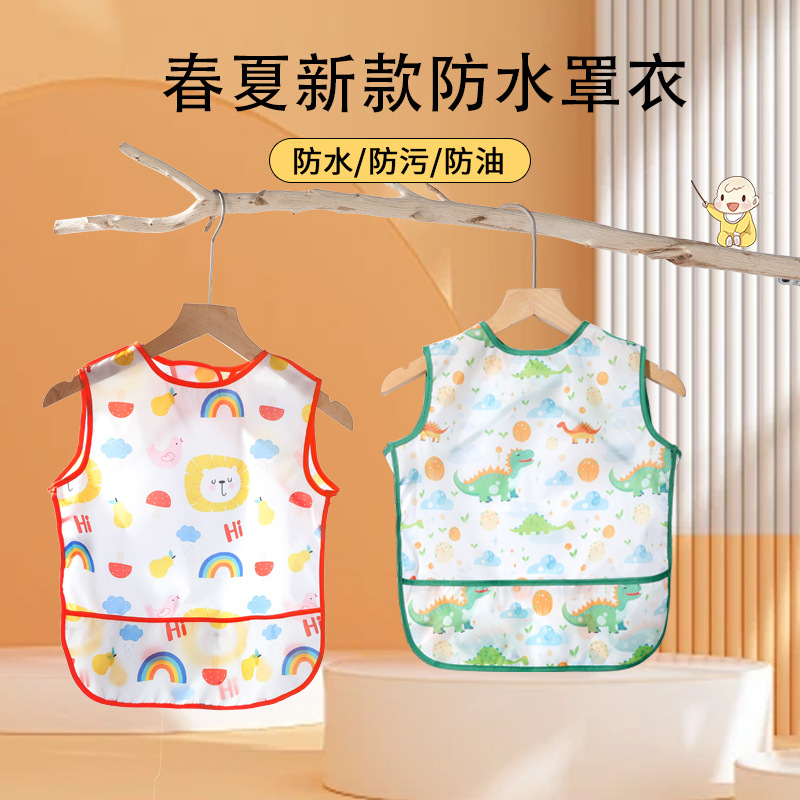 厳選された子供用オールインワンベストよだれかけ春夏防汚エプロン防水ノースリーブ漫画カバー選択