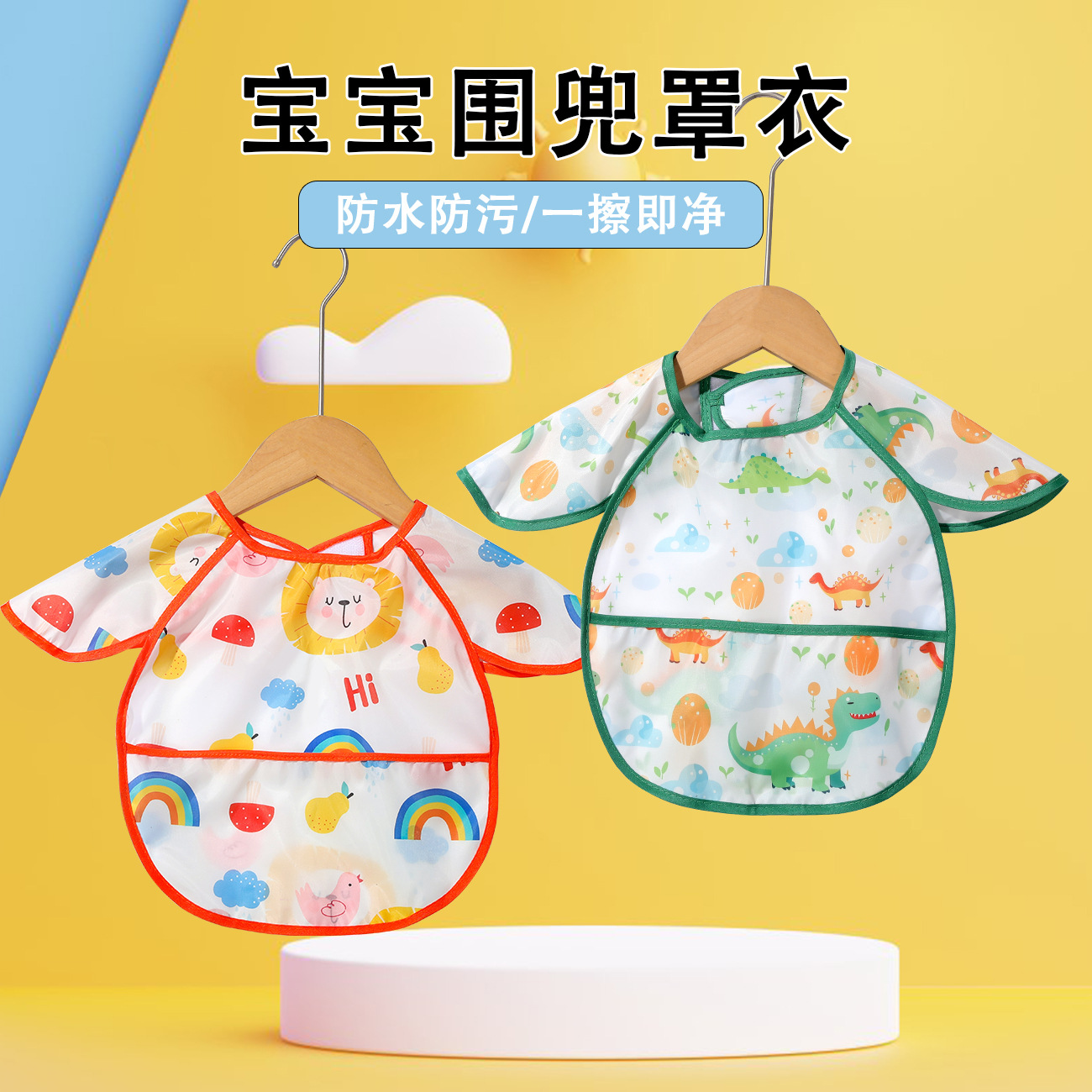 儿童饭兜宝宝吃饭围兜罩衣喂饭防水婴幼儿辅食四季硅胶围嘴口水巾