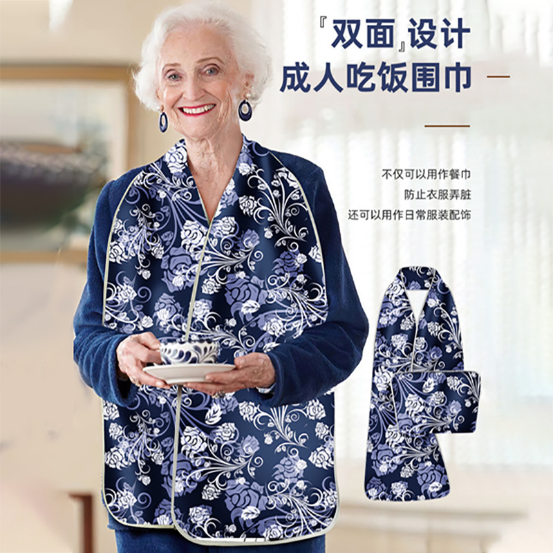 クロスボーダーの人気大人用よだれかけ二重プリント高齢者の食事用よだれタオル食事用ポケット油汚れ防止ノズル