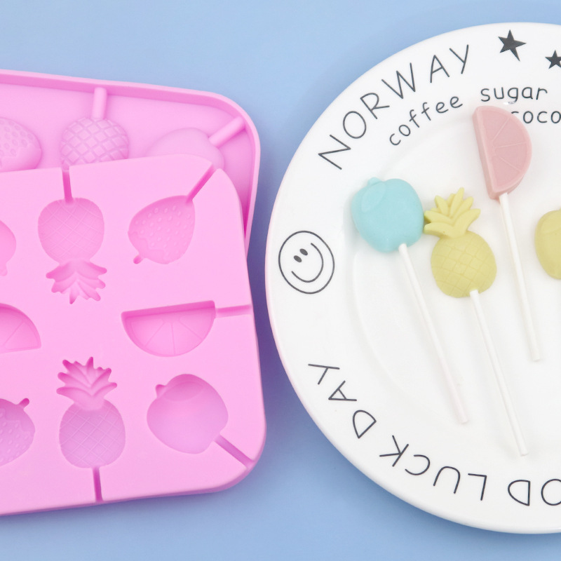 スポット卸売り8連果物シリカゲルロリポップ金型は棒diy食品の離型に合わない