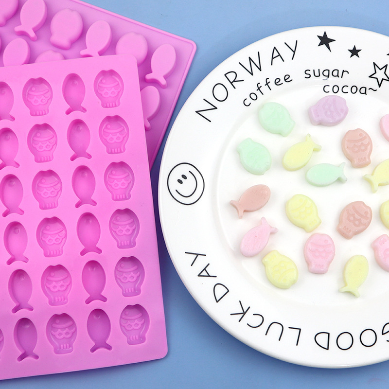 現物卸売り36連小魚チョコレート型食品級耐高温離型しやすい塗装ワックス立金型