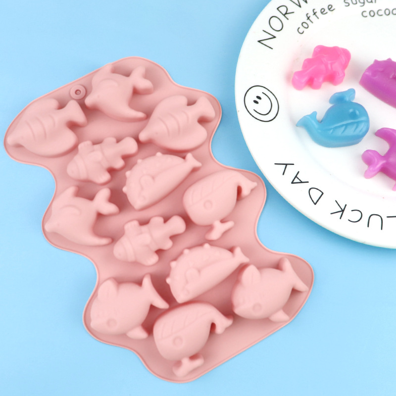 スポット卸売り12連海洋小魚DIYチョコレートモデル食品級シリコンゼリープリン金型