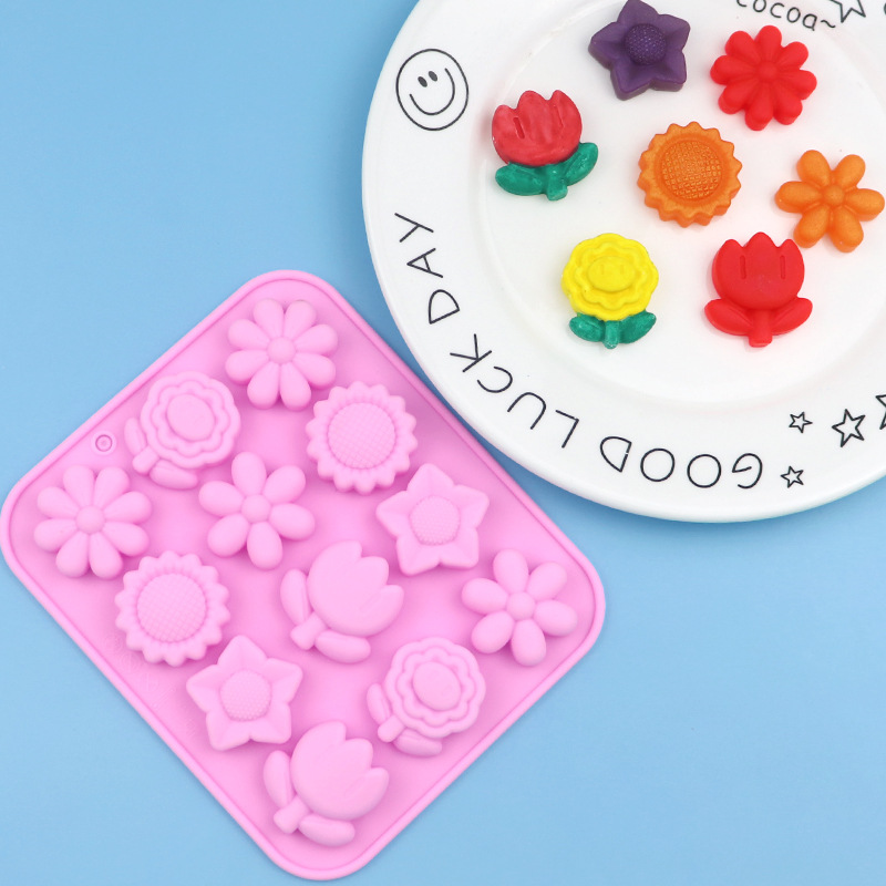 12連異なる花シリコンチョコレート金型手作りゼリー金型diyビスケット焙煎ケーキ装飾金型