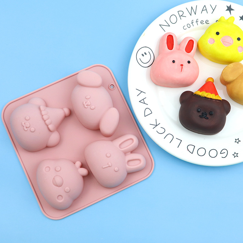 スポット卸売り4連猫頭シリカゲルケーキ金型アニメデザート手作りパン金型耐久性