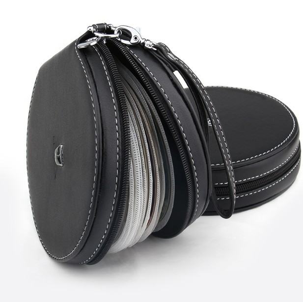 本革ストライプジッパーバッグ自動車用キーバッグ汎用型個性定リモコン保護カバー男レディース