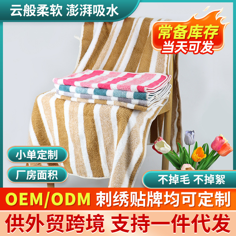 タオル コーラルベルベット素材 ストライプタオルは吸水性が高く、肌に優しく、柔らかく、糸くずが落ちにくい、糸くずが落ちにくい、柔らかいタオルです。
