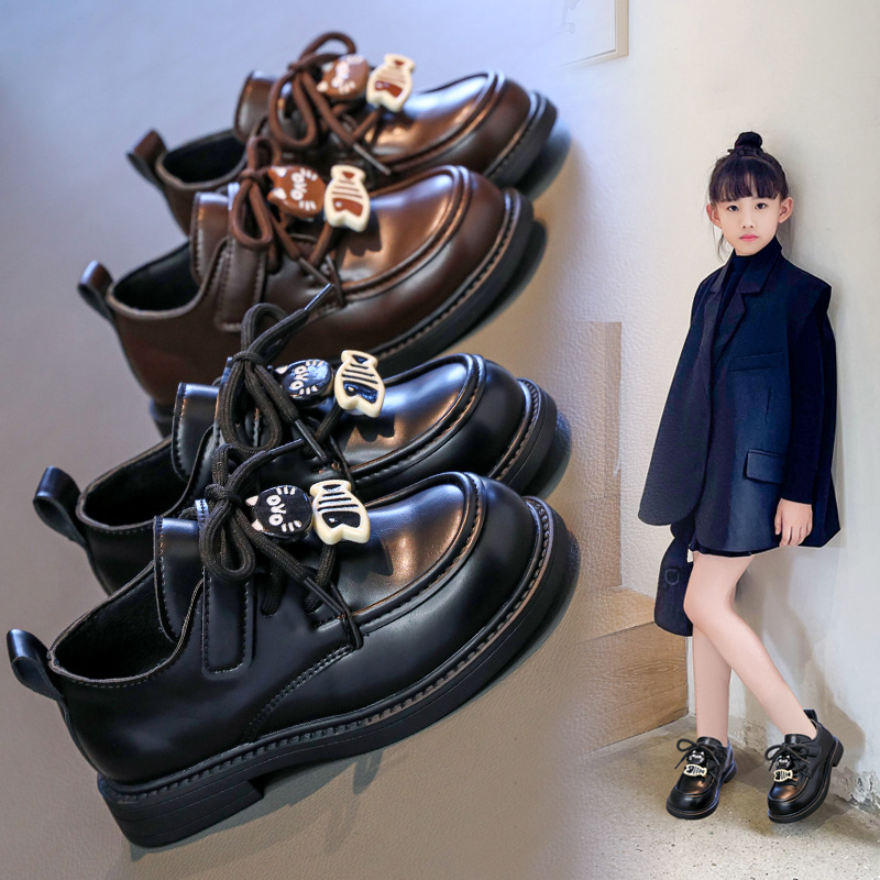 女の子の春と秋の革靴 2025 韓国語版中型と大型の女の子の赤ちゃんの小さな香りのソフトソール黒のパフォーマンスシューズ子供のプリンセスシューズ