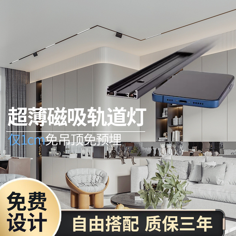 磁気吸引灯客間超薄型明装軌道条グリル汎光スポットライト落書き知能無主灯
