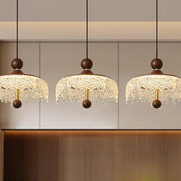フレンチミッドセンチュリースタイルウォータードロップレストランシャンデリア3ヘッドロングプレートバーレトロウォールナットカラーペンダントライン中山照明