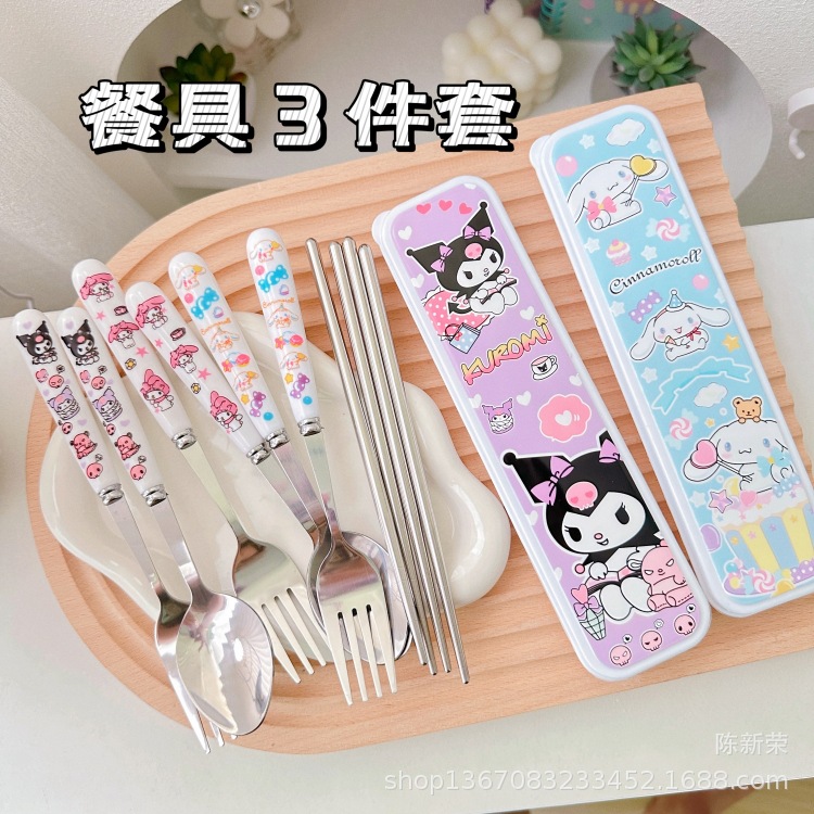 アニメ少女心クロミプリント食器箱フォークスプーン箸三点セット学生昼食携帯