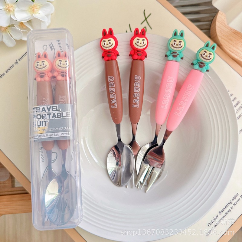 新しい周辺漫画 Capibala ステンレス鋼 2 ピースカトラリーセット、外出時に持ち運びに便利な子供用スプーンとフォークのカトラリー