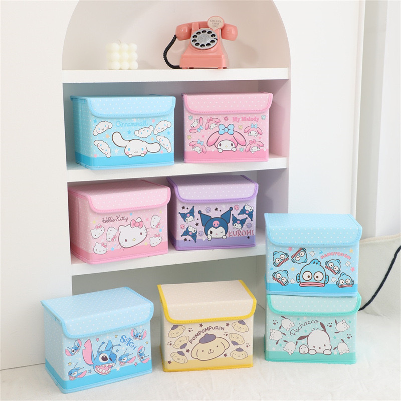 日系アニメクロウミPUレザー収纳ケース可爱いデスクトップ折りたたみマカロン小収纳整理ケース