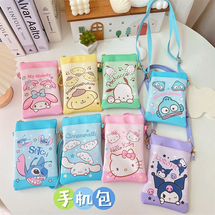 新品パーカー犬携帯バッグPUレザー二重収納バッグ乙女心クロミ両面プリント斜め掛けショルダーバッグ