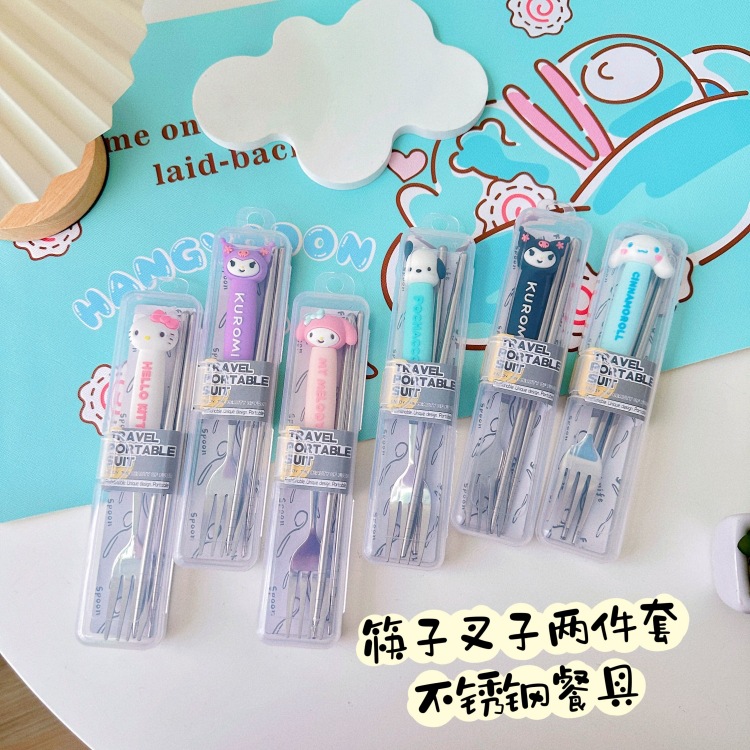 外国貿易アニメシリカゲルクロミ食器箸フォーク2点セット便利なフォーク箸子供食器セット
