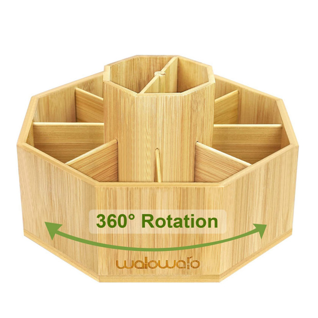 新型回転ペン立て木製オフィス文房具収納筒デスクトップ収納ペン立て六角形美化粧ブラシ収納筒