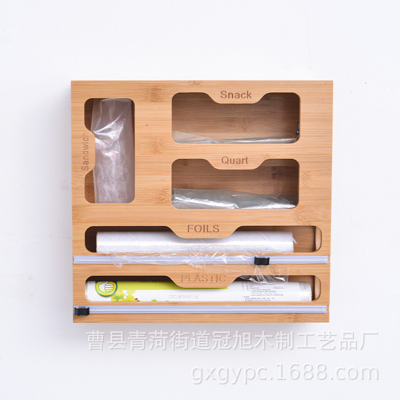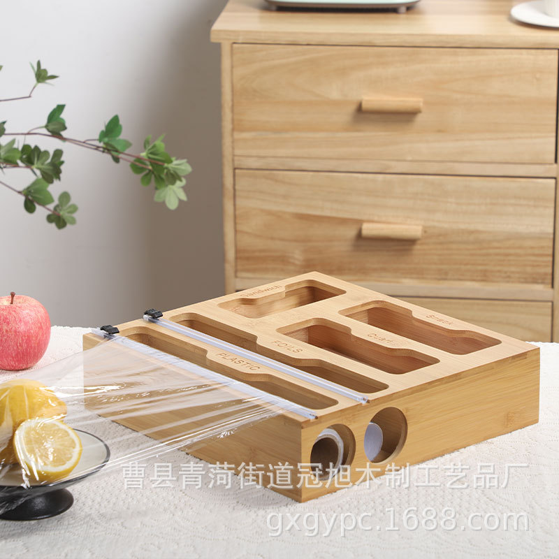 竹製ラップ収納ボックスクリエイティブキッチン食品保存袋カッティング引き出し収納ボックス木製収納ボックス