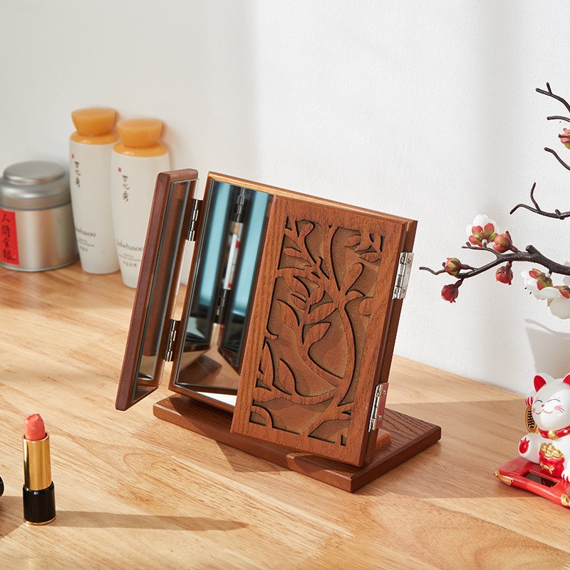 デスクトップ化粧鏡木製折り畳み学生寮化粧鏡クリエイティブ化粧鏡彫刻化粧台鏡