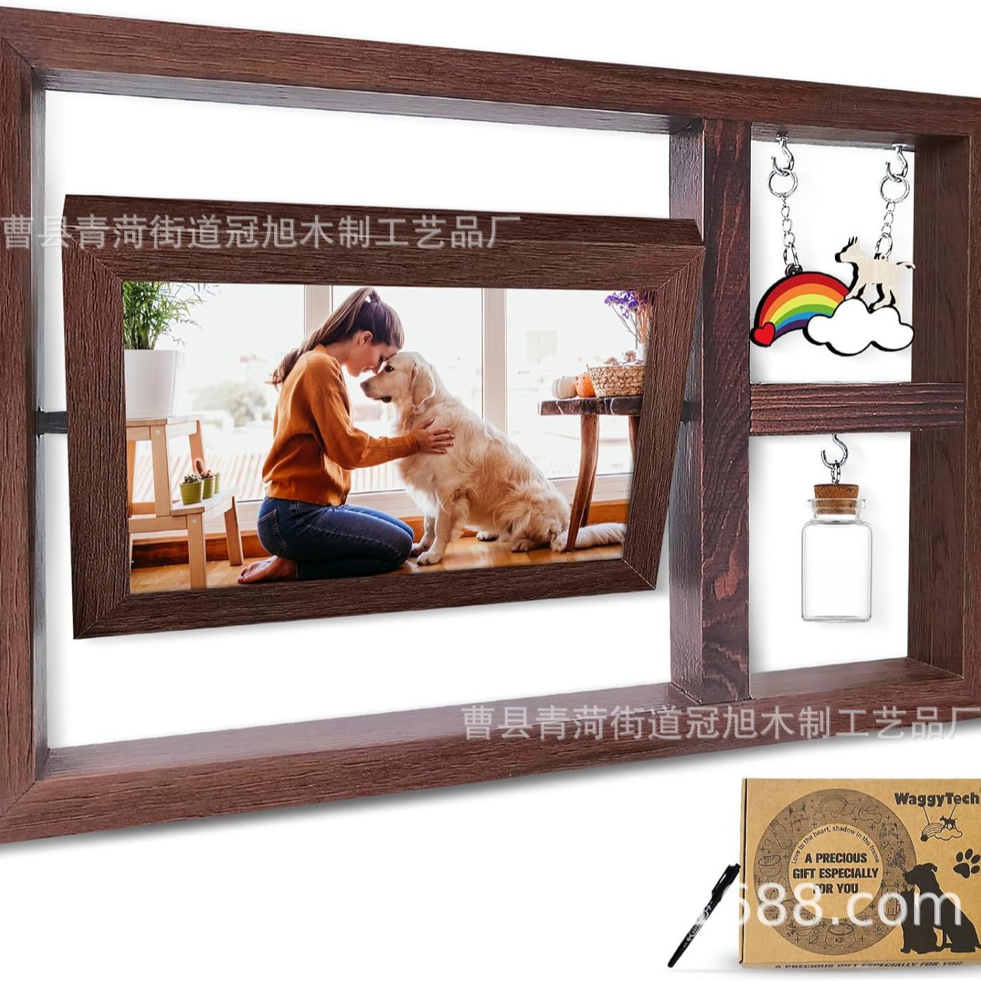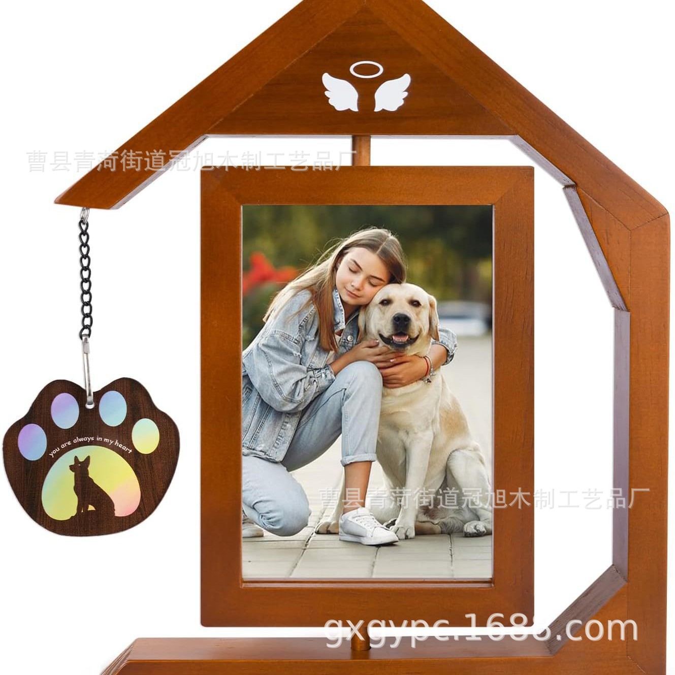 クロスボーダー木製ペットフォトフレーム、両面デスクトップフォトアルバム、回転式猫と犬の紛失記念ギフト