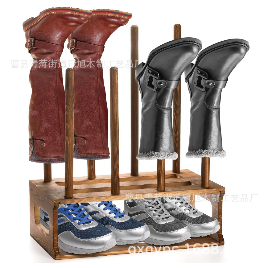 寮用自立型木製ブーツラック、小型ハイブーツ収納ラック、カントリースタイルのカウボーイブーツとレインブーツの収納ラック