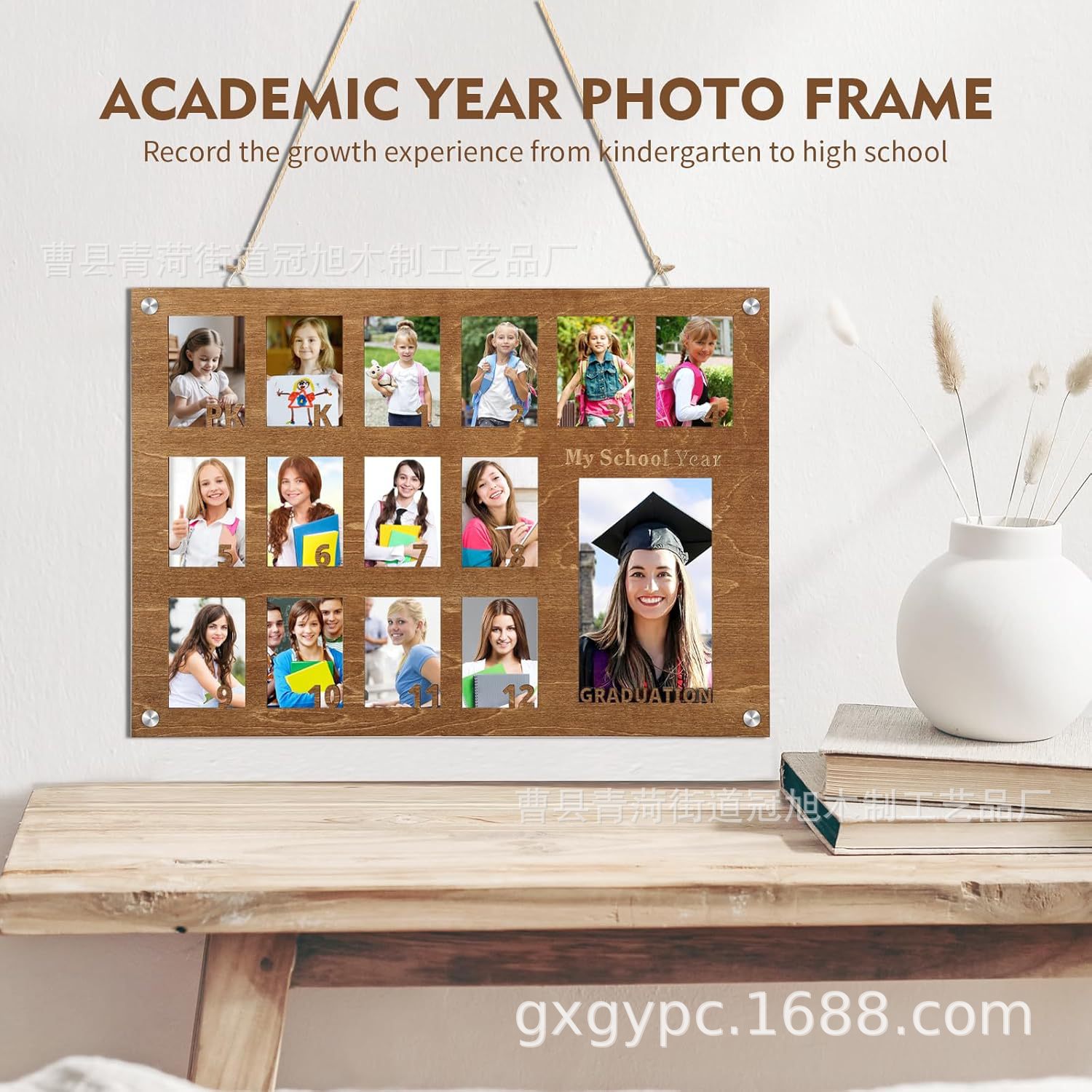 木製学校年フォトフレーム就学前から卒業学校フォトアルバム赤ちゃん記念品フォトフレーム毎月の誕生日写真