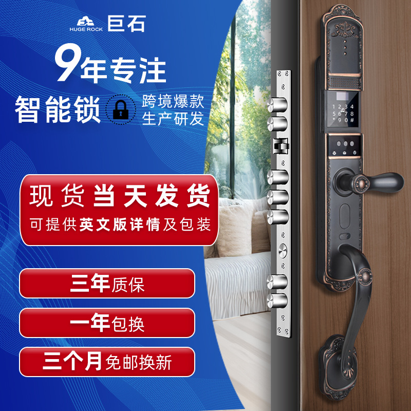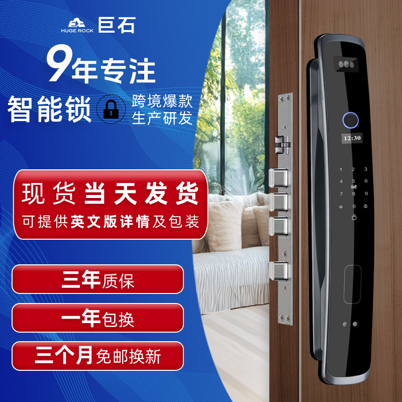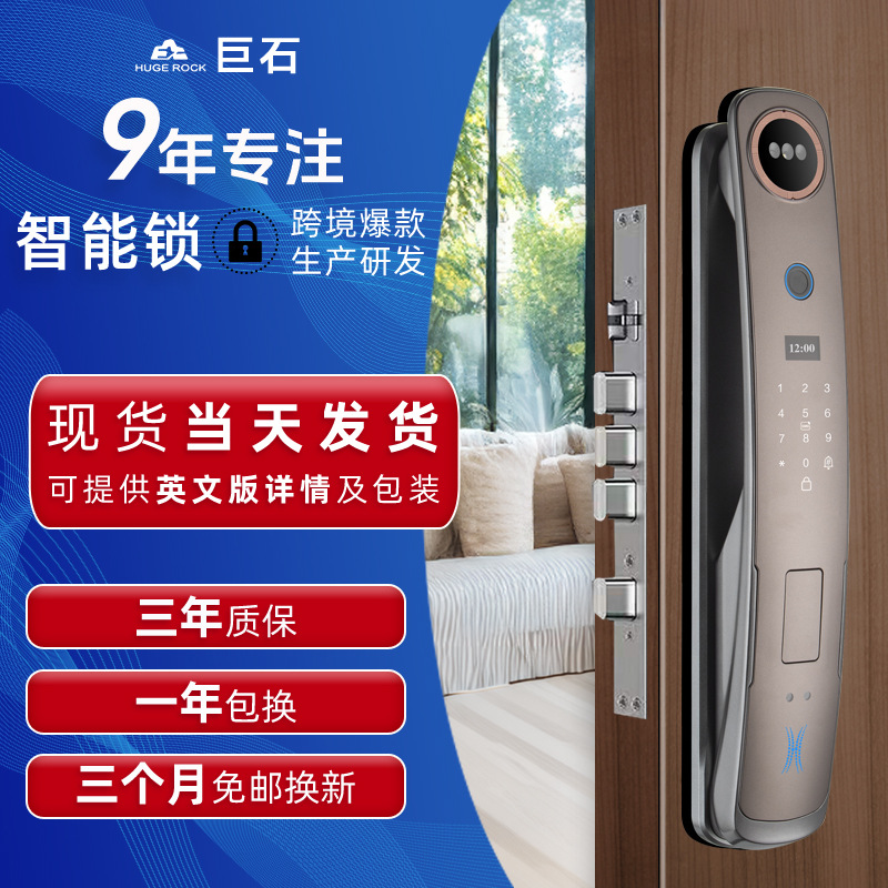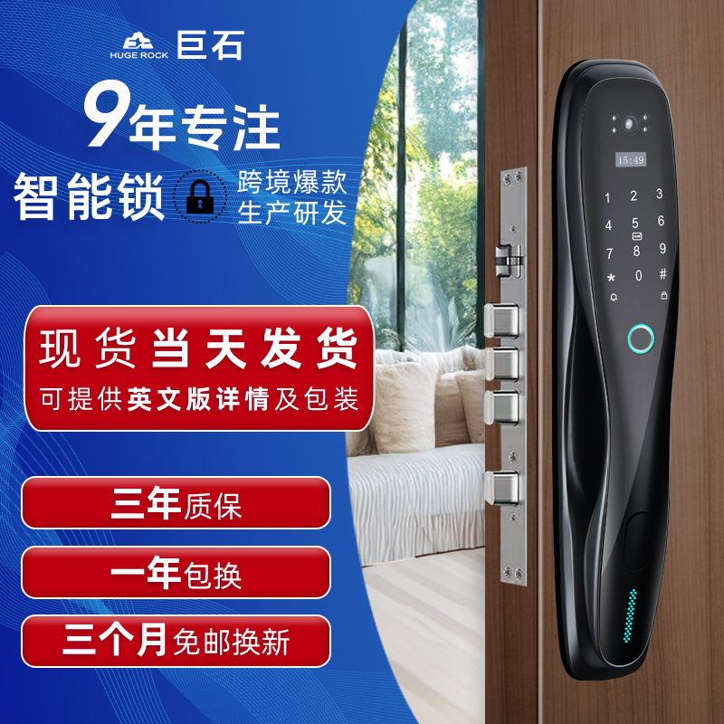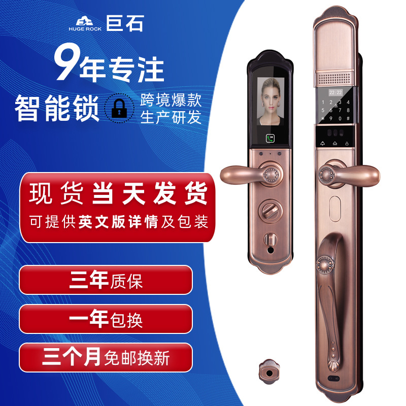 クロスボーダー対応ロシア語対応スマートドアロック木製ドア用顔認証全自動指紋ロック家庭用指紋パスワードロック玄関ドア