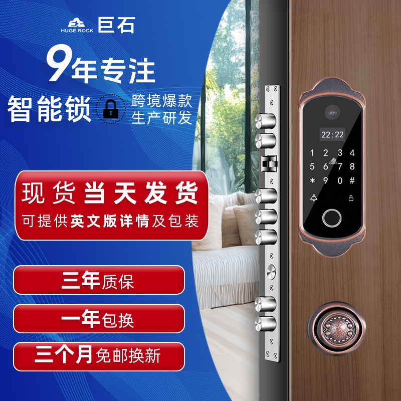 全自動クロスボーダー落書きスマートロック、家庭用パスワードロック、玄関ドア連動ビジュアルキャットアイ盗難防止ドア指紋ロック