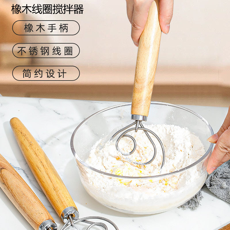 ミニ木柄卵打ち器手動攪拌棒家庭用卵小麦粉クリーム送り器焙煎ツール