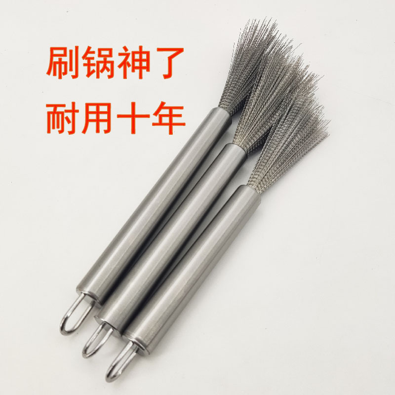 長い柄304ステンレスのブラシの神器のパイプの柄は掛け式の台所のワイヤーで鍋の碗の皿を洗ってブラシを洗います。