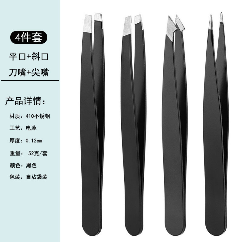 斜め口ステンレス製眉毛クリップ 黒色毛抜きピンセット 眉毛整形美容ツール 96クリップ 430ステンレス