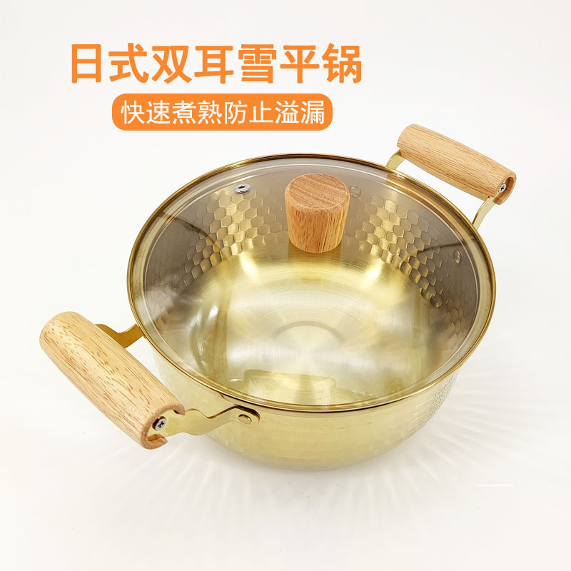 日韓式ステンレスチタン金雪平鍋は鍋のハンマーの紋様のラーメン鍋のケヤキの柄の両耳の取っ手にくっついていません。