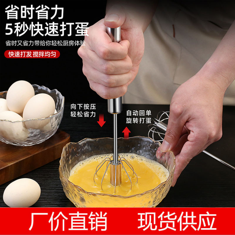 ステンレス半自動回転卵泡立て器家庭用キッチン小型手動式バッタークリーム泡立て器ミキサー