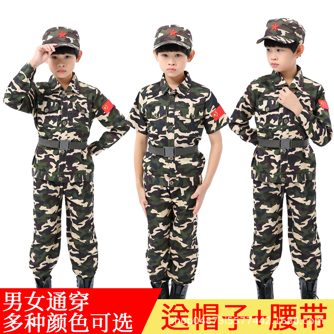 子供迷彩服セット男の子女の子夏キャンプ小中学生軍事訓練服幼稚園迷彩コスチューム