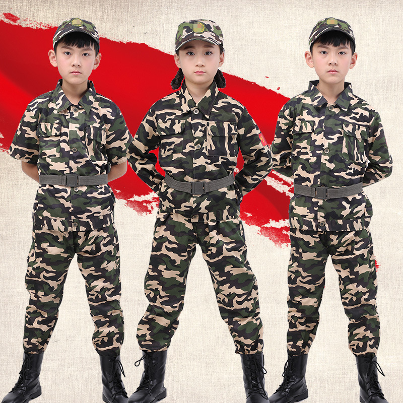 児童迷彩服セット男女児童幼稚園野外開拓小中学生軍事訓練夏キャンプ服装卸売り