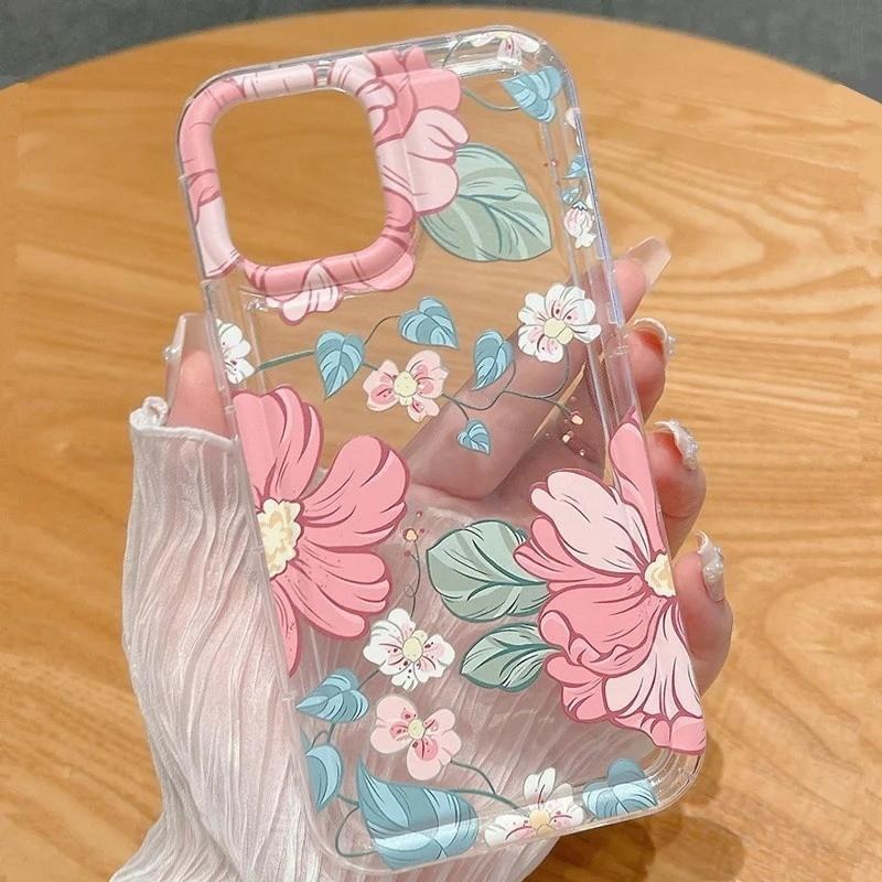 日本と韓国の新鮮な花柄 Apple 15promax 携帯電話ケース iphone13/12pro 透明 11 ソフト 14 に適しています