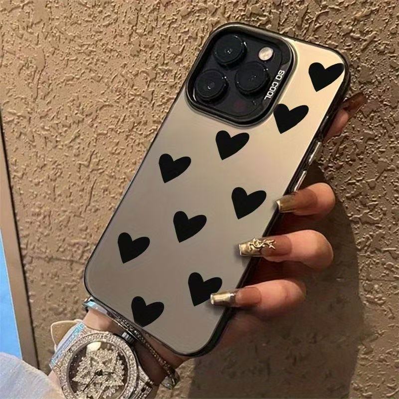 Apple 16Promax 携帯電話ケース 15/14/13pro カラーシルバー IMD12 ファッション 11 パーソナリティに適したブラックラブハート