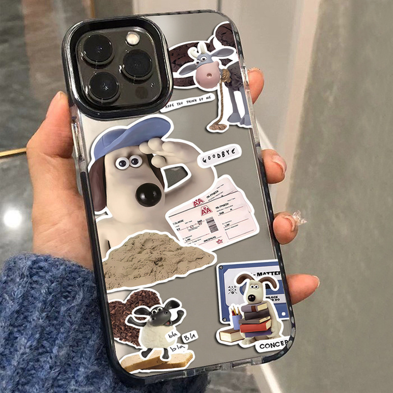 Ins番犬小羊リンゴ16promax携帯ケースiPhone14 2色13透明黒縁15潮牌x